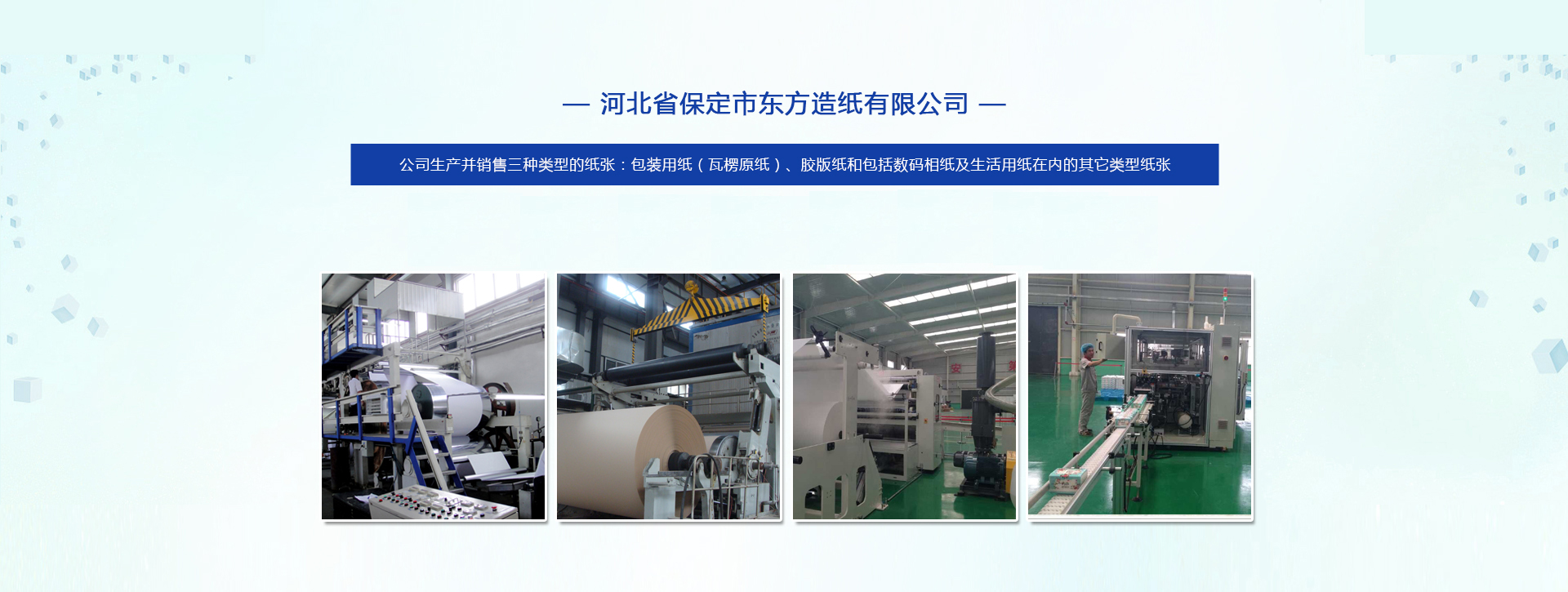河北省保定市東方造紙有限公司位於(yú)河北省保定市,公司利用回收紙作爲其主要原材料,生産並(bìng)銷售三種類型的紙張:包裝用紙(瓦楞原紙)、膠版紙和包括數碼相紙及生活用紙在内的其它類型紙張。